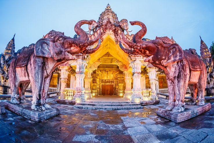 Вечером гостям покажут фееричное шоу в лучших традициях Лас-Вегаса — с 4D-эффектами, пиротехникой, воздушным балетом, акробатами, дрессированными слонами. В представлении участвуют 400 человек, 44 слона, 3 тигра, 200 птиц и 4 тайских буйвола.